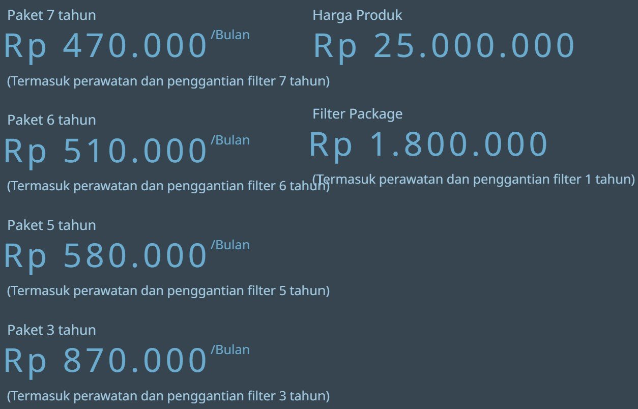 | Masa Filter / Kapasitas | Plus Neo-Sense : 6 Bulan RO Membrane : 24 Bulan Plus Inno-Sense : 18 Bulan |