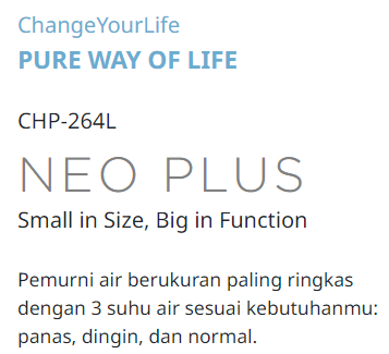 | Masa Filter / Kapasitas | Neo Sense : 6 Bulan RO Membrane : 24 Bulan Plus Inno-Sense : 18 Bulan Antibacterial : 12 Bulan |