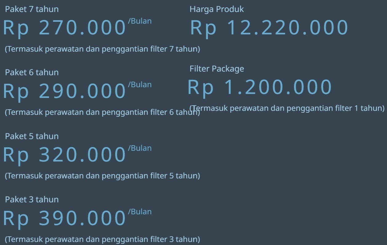 | Filter / Masa Filter | Pre Filter : Dapat Dicuci Fine Dust Filter : 4 Bulan HEPA Filter : 12 Bulan RBD Plasma Filter : Dapat dicuci Catalyst Filter : 24 Bulan Deodorisation Filter : 24 Bulan |