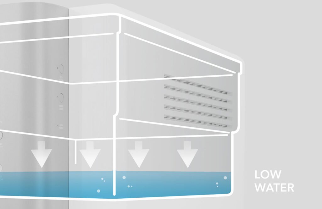Indikator dinyalakan ketika level air tangki air bagian dalam menjadi rendah.